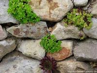 Beim Bau können größere Fugen im Mauerwerk mit einfacher Blumenerde aufgefüllt und mit geeigneten Pflanzen besetzt werden. Für die Sonnenseite sind das zum Beispiel Igelpolster, Steintäschel, Hungerblümchen, Pfingst- und Geröll-Nelke sowie viele mediterrane Kräuter. Für die Schattenseite eignen sich Mauerraute, Gelber Lerchensporn, Waldbeere, Felsenteller und einheimische Farne.