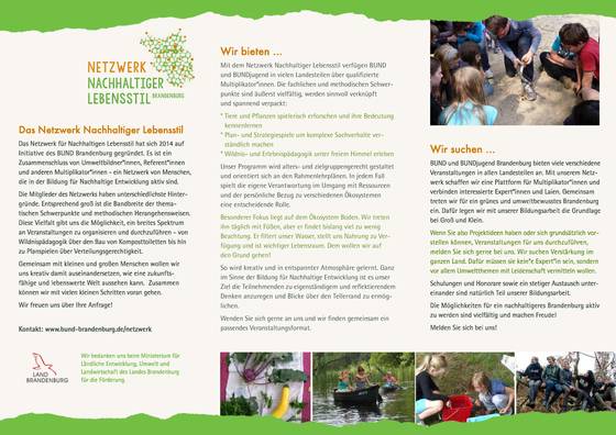 Für Anfragen, weitere Informationen oder Anregungen erreichen Sie uns in der Landesgeschäftsstelle in Potsdam: bund.brandenburg(at)bund.net. Weiterhin suchen wir Menschen, die gerne als Teamer/innen oder Multiplikatoren mit uns arbeiten wollen! Wir freuen uns auf Ihre Mails!